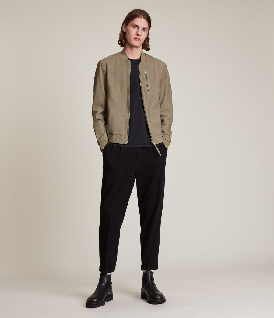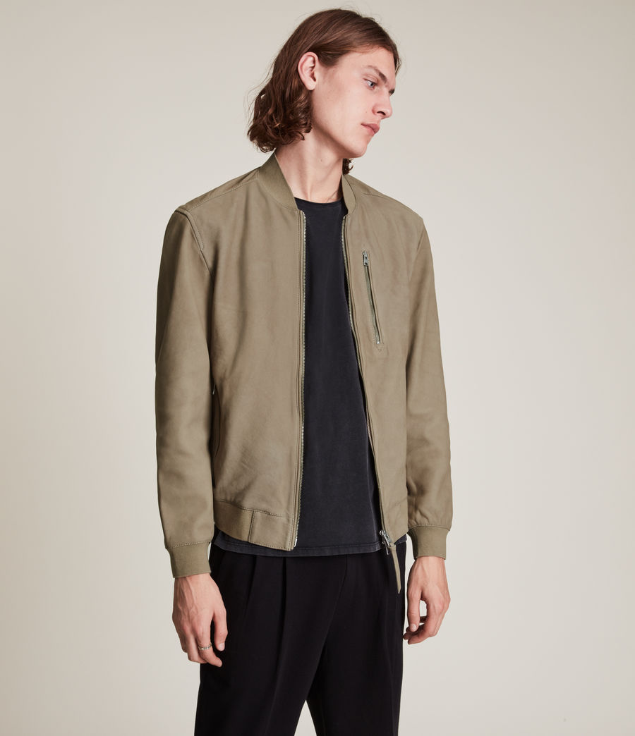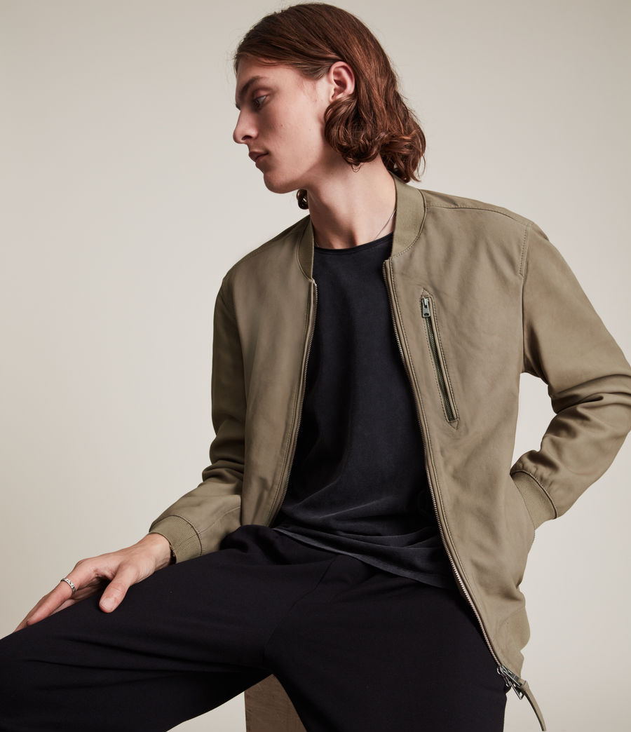 The Stones nubuck bomber taupe jacket for men is minimalist in design and cut to an easy regular fit shape. It’s crafted from lightweight nubuck – ideal for warmer weather.